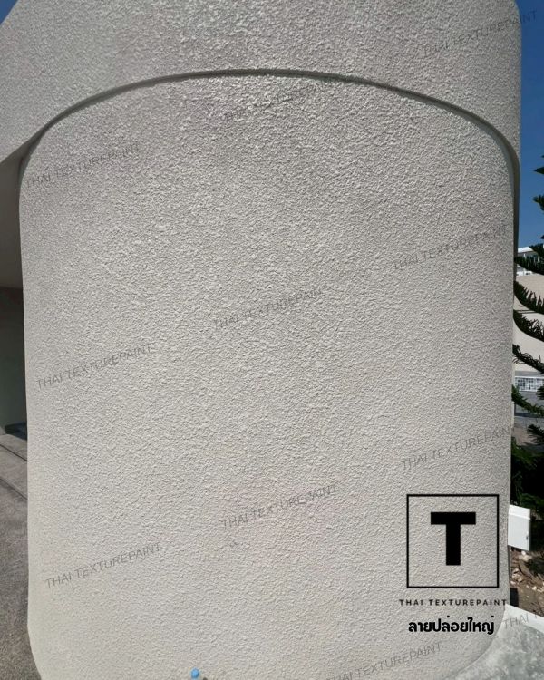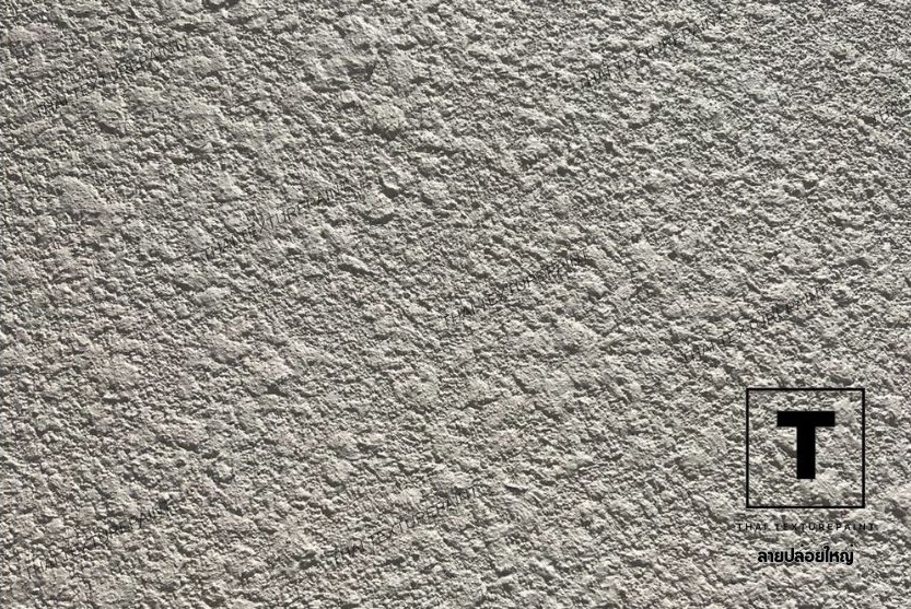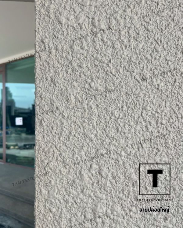 พื้นผิวของลายปล่อยใหญ่จะมีเม็ดลายที่ขรุขระแบบจริงจัง ตะปุ่มตะป่ำทั่วผืนผนัง ไม่ใช่แค่จุดเล็ก ๆ กระจาย แต่เป็นลักษณะของเม็ดลายที่ โผล่และยกตัว ขึ้นมาอย่างชัด ทำให้เกิดมิติที่เห็นได้ตั้งแต่เดินมาไกล ๆ พอเข้าใกล้จะยิ่งรู้สึกว่า “เออ ลายมันมีพลังของมันนะ” คือมันไม่ได้เป็นลายที่มาแบบเนียน ๆ สวยหวาน ลายนี้มันมาด้วยความเท่ ความแข็งแรง แต่ที่ดีคือมันใช้งานได้กว้าง ไม่ต้องเป็นร้านกาแฟ ร้านอาหาร ร้านแฮงค์เอ้าท์ หรือแม้แต่บ้านก็เอาอยู่หมด ถ้าอยากได้ความเท่แบบจัดเต็ม