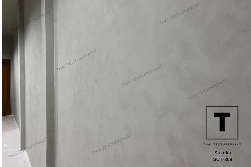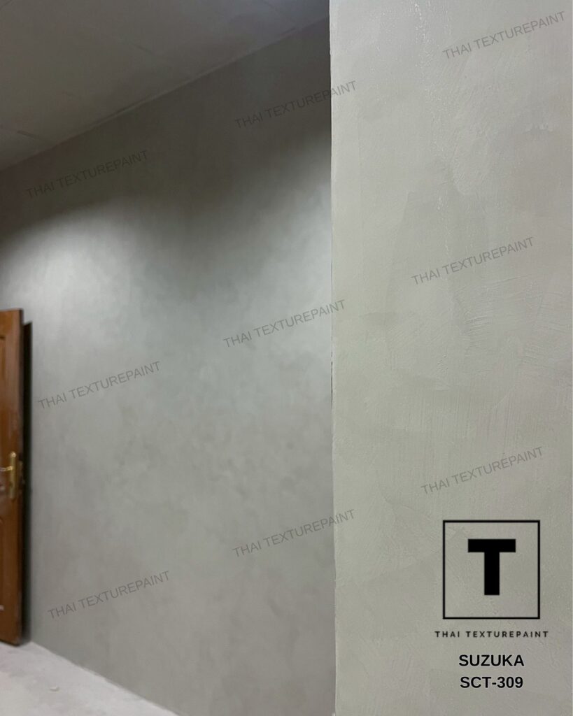 สี SCT-309 ที่เราใช้ เป็นโทนเทาอ่อนกลาง ๆ ไม่เข้มจนห้องดูทึบ และไม่อ่อนจนจืดชืด มีความบาลานซ์ที่ดีมาก ยิ่งเวลามีแสงไฟส่องกระทบยิ่งเห็นมิติของลายชัดเจนขึ้น ช่วยทำให้บรรยากาศโดยรวมของห้องดูมีชีวิตชีวา และน่าอยู่ขึ้นเยอะเลยครับ