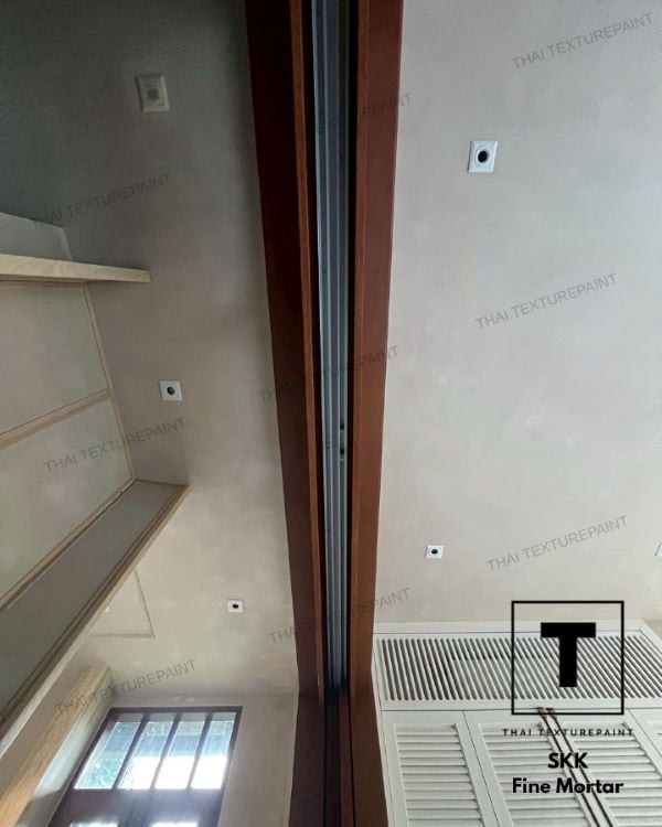 SKK Fine Mortar คือวัสดุตกแต่งผนังที่ให้ผิวสัมผัสสีลอฟท์แบบญี่ปุ่น แค่ฉาบลงไป จะได้ผิวด้านแบบเนียน ๆ บรรยากาศของห้องก็เปลี่ยนไปอย่างมีคลาส